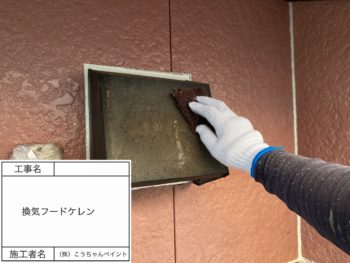 換気フード中塗り施工中