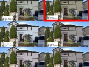 外壁カラーシミュレーションをいくつか行い、右上(赤枠)のお色に決まりました!