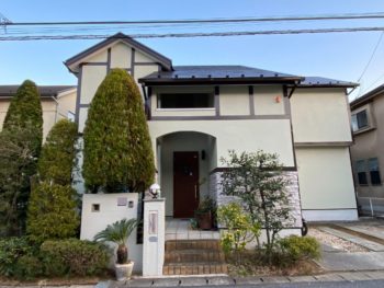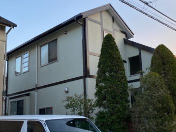 | ご提案内容 | 築14年経過しているモルタル外壁は、黒ずみや雨染みの汚れが目立ってきておりましたので塗膜表面に汚れが付着しにくく、建物の美観を維持してくれるASTECシリコンREVO1000外壁用塗料をご提案させて頂きました。 スレート屋根には紫外線や雨などの劣化により、何か所かひび割れが発生しておりました。屋根の色彩や光沢を長期間美しくキープさせる為、高遮熱効果を発揮するASTECスーパーシャネッサーモSi屋根用塗料をご提案させて頂きました。 塗装作業に入る前にはひび割れ箇所の下地補修を隈なく丁寧に行いました。美しく生まれ変わりました。ご予算内の施工もお任せください、防水や大工工事まであらゆるご要望に合わせたご提案が弊社では可能になります。 |