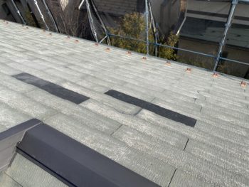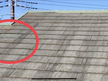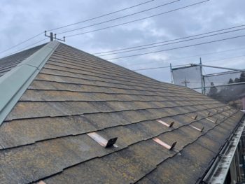 屋根は全体的にコケ・カビ汚れが付着しています。