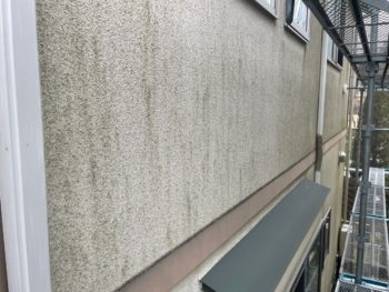 モルタル外壁は黒ずみ汚れが目立ちます。