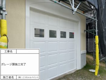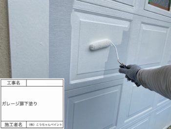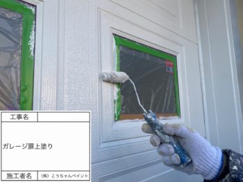 ガレージ扉上塗り施工中