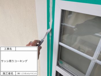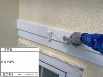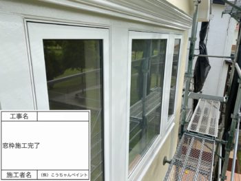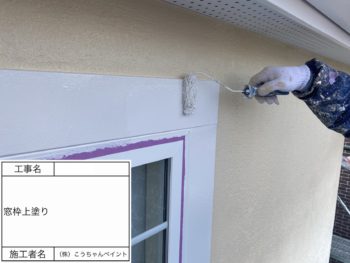 窓枠上塗り施工中