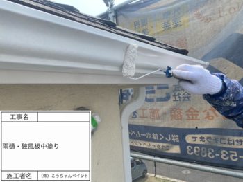 破風板・樋中塗り施工中