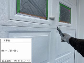 ガレージ扉中塗り施工中