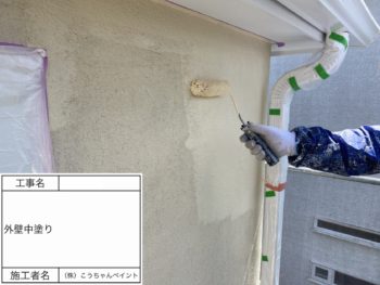 外壁中塗り施工中
