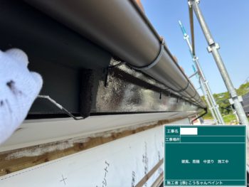 破風・雨樋中塗り施工中