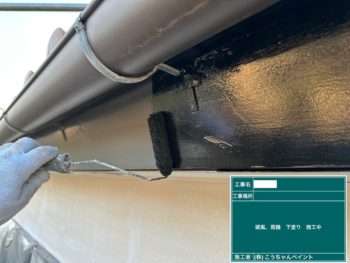 破風・雨樋下塗り施工中