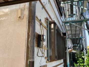 外壁下塗り施工中