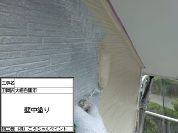 外壁中塗り施工中
