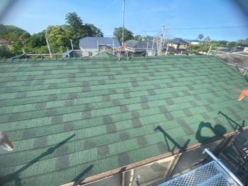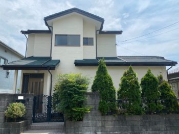 | お客様のご要望 | 強風雨の翌日、朝起きたら畳に雨染みがあり、新聞折込のチラシを見て弊社に至急見に来てほしいとご連絡をいただきました。すぐに駆けつけることができるのは地元業者の強みです。雨漏りは外壁の剥がれからの雨漏りでした。補修を行い防水機能を回復、雨漏りの心配がないよう施工いたしました。外壁塗装の塗料は耐候性、低汚染性、防カビ・防藻性のあるASTECのスーパーラジカルシリコンGHを用い、耐久性、美観性を高めました。屋根の建材年数がかなり経っていて全体的な劣化がみられたため屋根カバー工を行いました。ジンカリウム鋼板(ガルバリウム鋼板と同じ組成)に釉薬でコーティングされた石粒の層がある屋根材でとても軽いものになります。ディーズルーフィングのディプロマットスターでお色はエバーグリーンをお選びいただきました。耐久年数30年の長期保証付きで今後は長く安心してお住まいいただけることと思います。 |