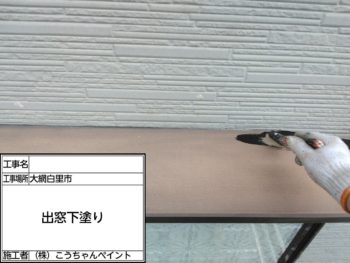 出窓中塗り施工中