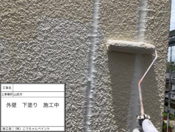 外壁下塗り施工中
