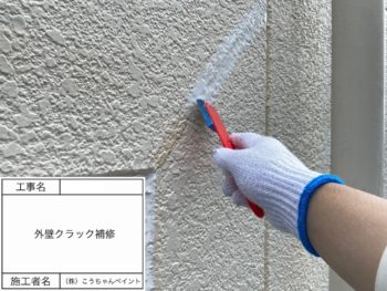 外壁クラック補修施工中