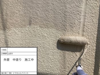 外壁中塗り施工中