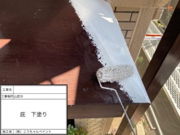 庇下塗り施工中