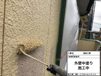 外壁中塗り施工中