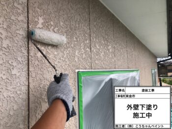 外壁下塗り施工中