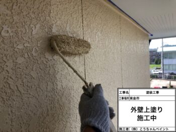 外壁上塗り施工中