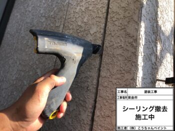 シーリング撤去施工中