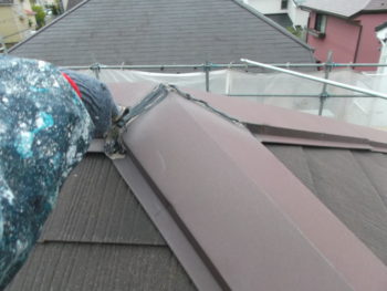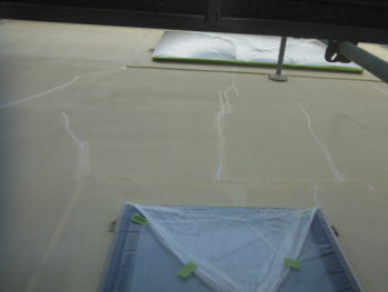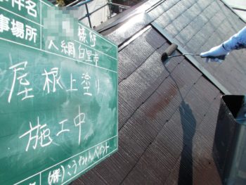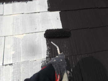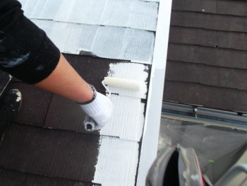 屋根の汚れを落とした後、下塗りを行います。