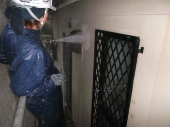 外壁も水洗いをし長年の汚れを落とします。
