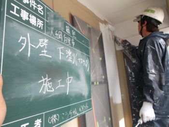 外壁の下塗りを行います。