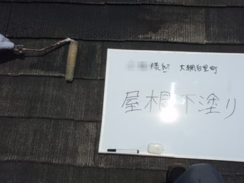 屋根下塗り施工中です。