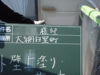 外壁、下塗り施工中です。