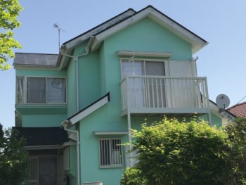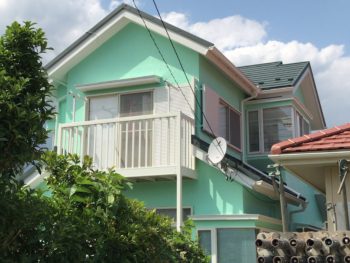 | 使用商材 | 外壁:日本ペイント パーフェクトトップ 色:49-80H 屋根:スーパーガルテクト 色:シェイドモスグリーン |