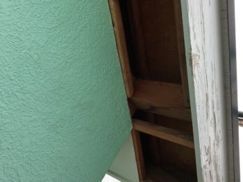 こちらも台風等の影響で軒天が剥がれてしまっております。