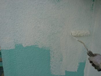 外壁下塗り塗装作業中