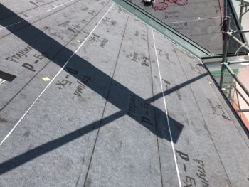 屋根防水シート貼り施工中。