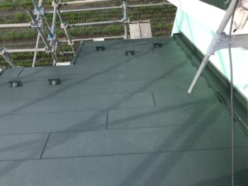 屋根スーパーガルテクト施工中。