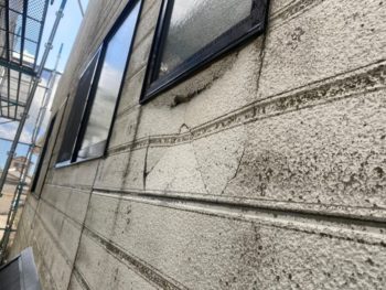 全体的にサイディングの割れや剥がれが酷い状態です。