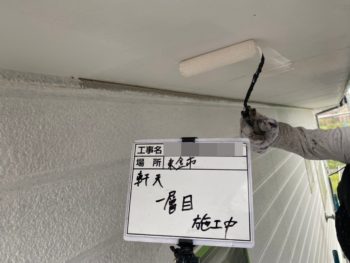 汚れと剥がれが見られた軒天(赤枠部分)は、真っ白な仕上がりです!