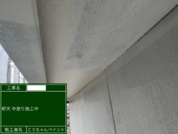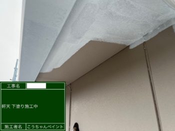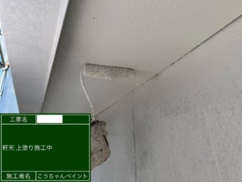 軒天中塗り施工中