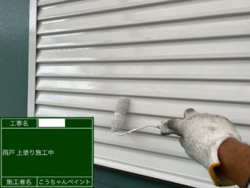 雨戸中塗り施工中