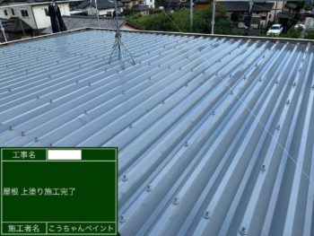 屋根上塗り施工中