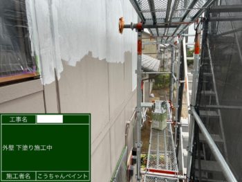 外壁下塗り施工中