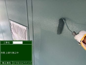 外壁上塗り施工中