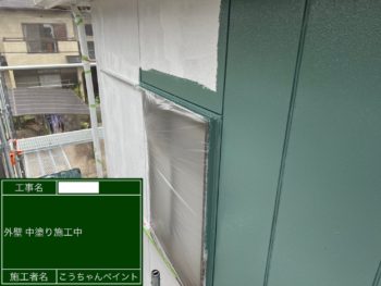 外壁中塗り施工中