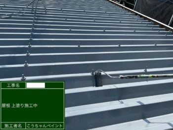 倉庫屋根中塗り施工中