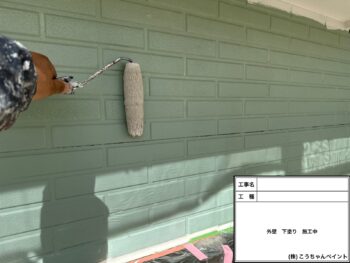 外壁下塗り施工中