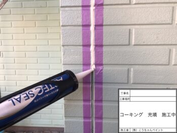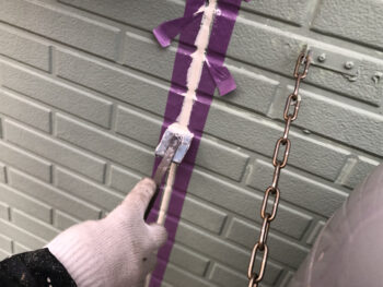 コーキング充填施工中