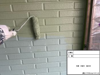 外壁中塗り施工中