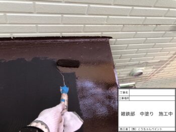 雑鉄部上塗り施工中