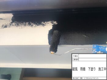 破風・雨樋下塗り施工中
