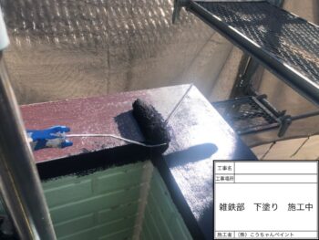 雑鉄部中塗り施工中