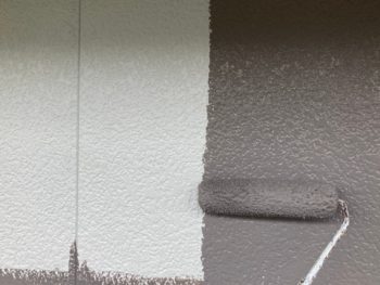 外壁中塗り施工中